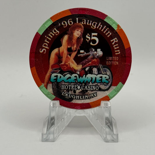 Edgewater Hotel Casino Laughlin Nevada 1996 'Spring '96 Laughlin Run' LE $5 Casino Chip N8171