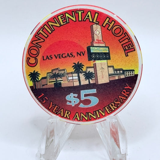 Continental Hotel Las Vegas Nevada 1996 '15 Year Anniversary' LE $5 Casino Chip N8115