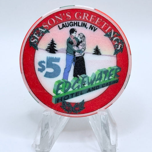 Edgewater Laughlin Nevada 1996 'Merry Christmas, Season's Greetings' LE $5 Casino Chip N8166
