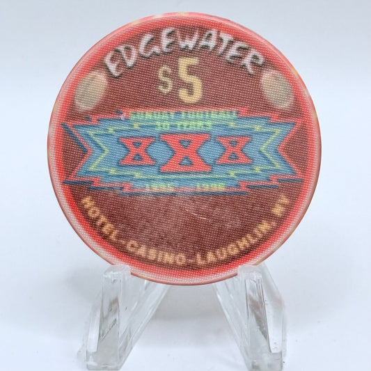 Edgewater Laughlin Nevada 1996 'Sunday Football 30 Years Xxx' LE $5 Casino Chip N8168