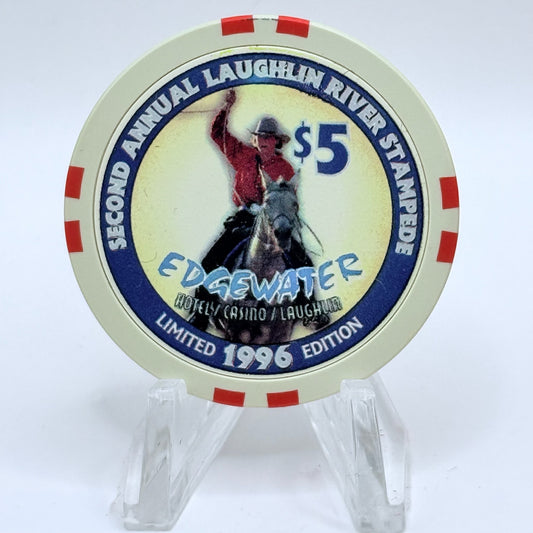 Edgewater Laughlin Nevada 1996 'Second River Stampede' LE $5 Casino Chip N9576