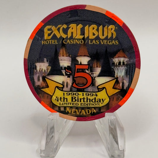 Excalibur Las Vegas Nevada 1994 '4th Birthday' LE $5 Casino Chip N2619