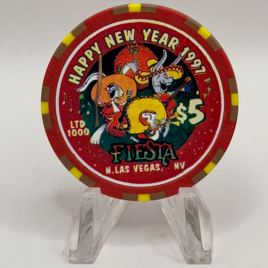 Fiesta Rancho N. Las Vegas Nevada 1997 '3rd Anniversary / Happy New Years' LE $5 Casino Chip N9633