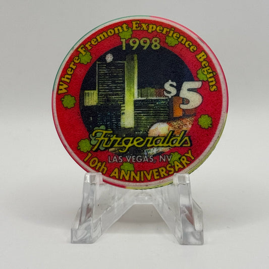 Fitzgeralds (Fitz) Las Vegas Nevada 1998 '10th Anniversary - Where Fremont Experience Begins' LE $5 Casino Chip N9656