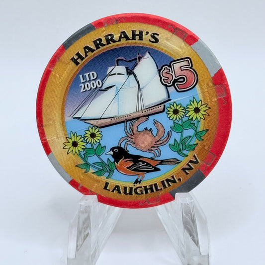 Harrah's Laughlin Nevada 2001 'Fun, Day And Night' LE $5 Casino Chip V7044