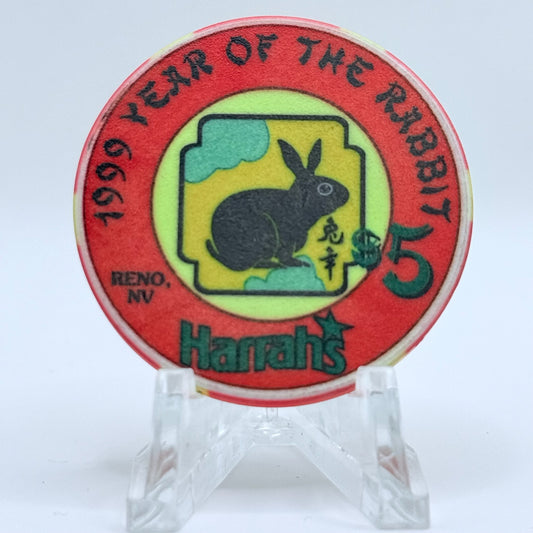 Harrah's Reno Nevada 1999 'Year of the Rabbit' LE $5 Casino Chip V2716