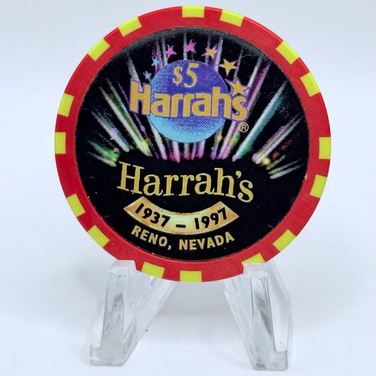 Harrah's Reno Nevada 1997 '60th Anniversary' LE $5 Casino Chip N8534