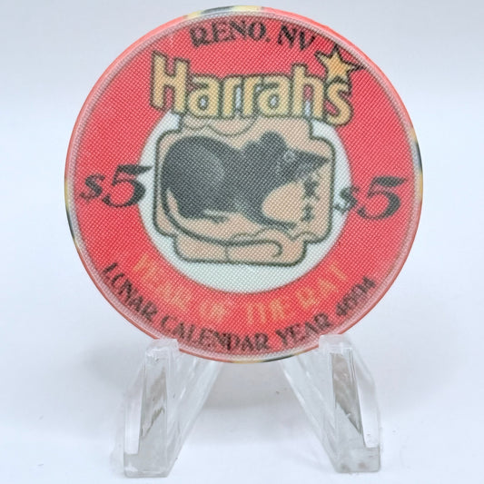 Harrah's Reno Nevada 1996 'Year of the Rat' LE $5 Casino Chip N8531