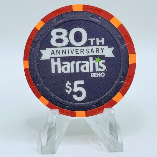 Harrah's Reno Nevada 2017 '80th Anniversary' LE $5 Casino Chip D2604