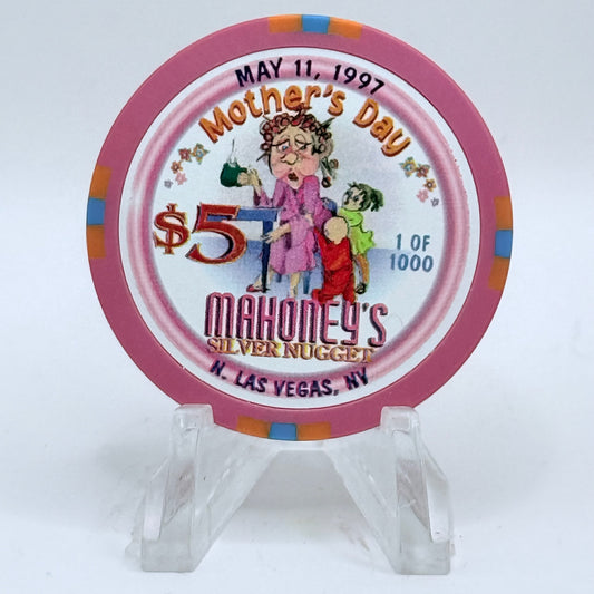 Mahoney's Silver Nugget N. Las Vegas Nevada 1997 'Mothers Day' LE $5 Casino Chip V1521