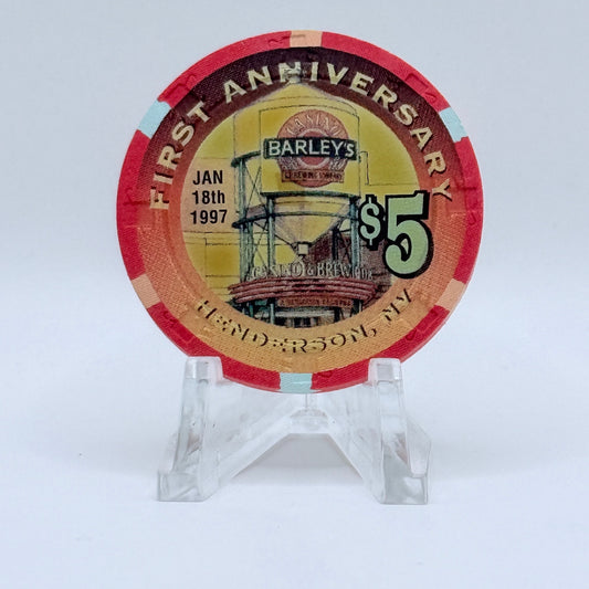 Barley's Casino & Brewing Henderson Nevada 1997 'First Anniversary' LE $5 Casino Chip N7990