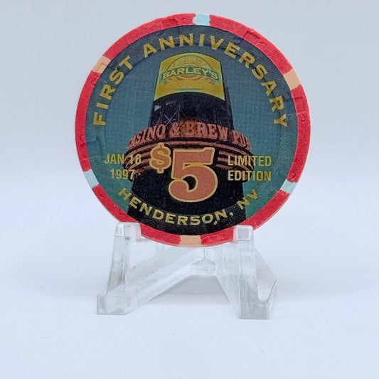 Barley's Casino & Brewing Henderson Nevada 1997 'First Anniversary' LE $5 Casino Chip N7992