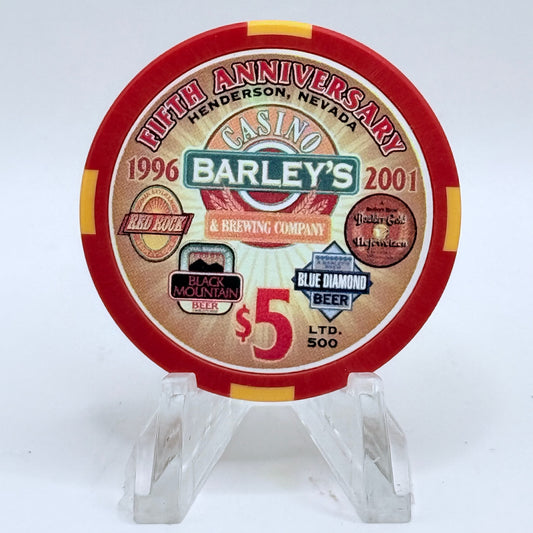 Barley's Casino & Brewing Henderson Nevada 2001 'Fifth Anniversary' LE $5 Casino Chip V7956
