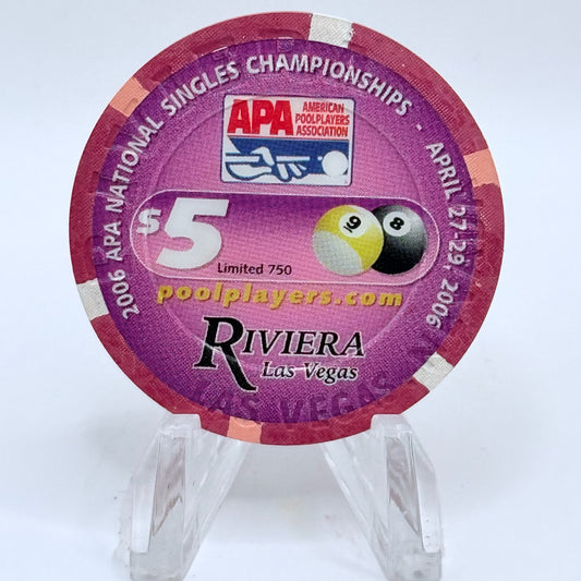 Riviera Las Vegas Nevada 2006 'Apa Pool Tourney' LE $5 Casino Chip E8326