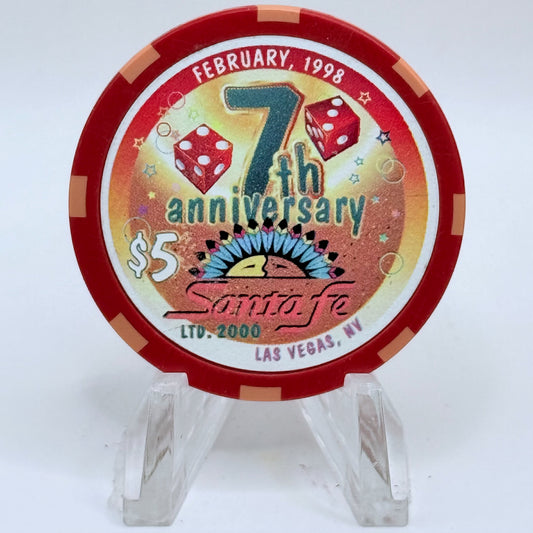 Santa Fe Las Vegas Nevada 1998 '7th Anniverary' LE $5 Casino Chip V1487
