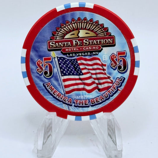 Santa Fe Station Las Vegas Nevada 2002 'America The Beautiful' LE $5 Casino Chip E2482
