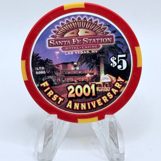 Santa Fe Station Las Vegas Nevada 2001 'First Anniversary' LE $5 Casino Chip V9740