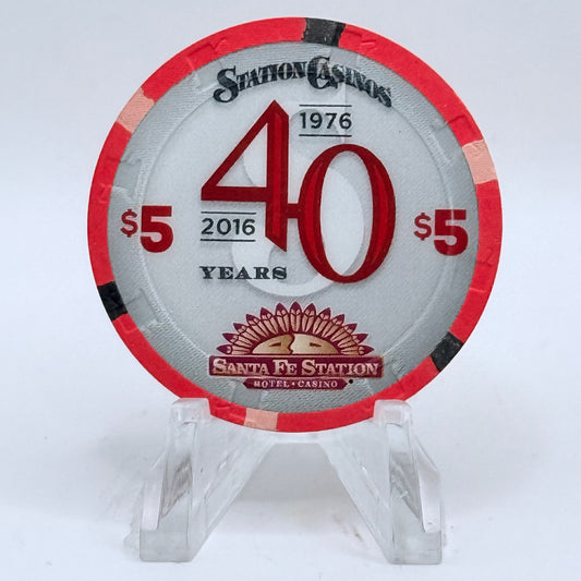 Santa Fe Station Las Vegas Nevada 2016 'Station Casinos 40th Anniversary Chip' LE $5 Casino Chip