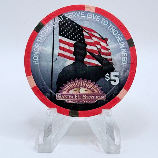 Santa Fe Station Las Vegas Nevada 2015 'Honor Those That Serve. Give To Those In Need.' LE $5 Casino Chip