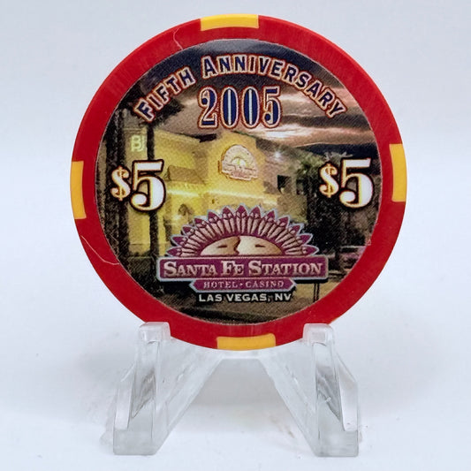 Santa Fe Station Las Vegas Nevada 2005 'Fifth Anniversary' LE $5 Casino Chip E8356