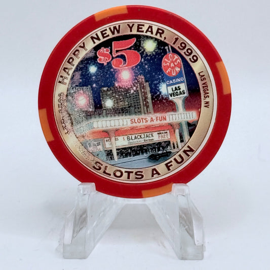 Slots-A-Fun Las Vegas Nevada 1999 'New Year' LE $5 Casino Chip V3437