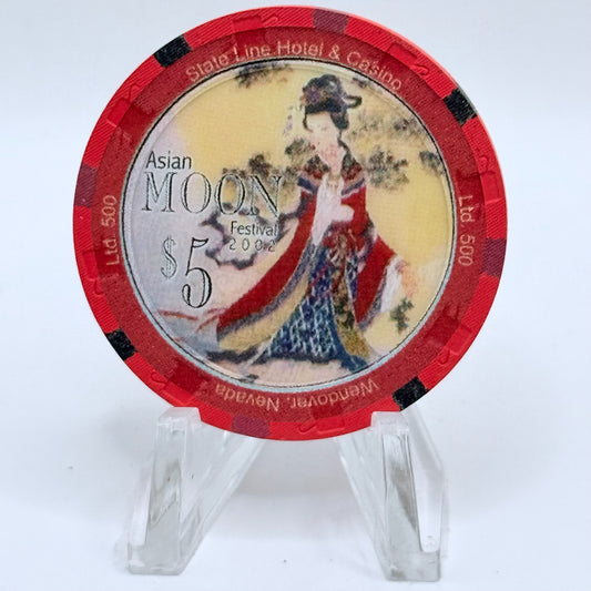State Line Casino Wendover Nevada 2002 'Asian Moon' LE $5 Casino Chip E2647
