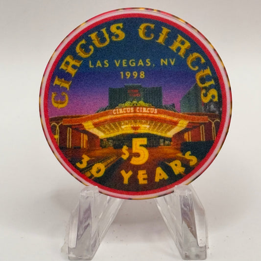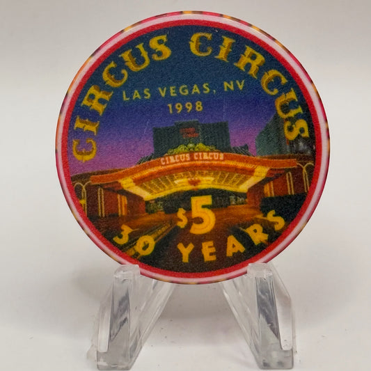 Circus Circus Las Vegas Nevada 1998 '30 Years' LE $5 Casino Chip V2278
