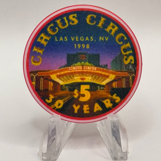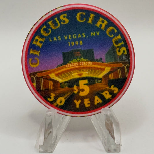 Circus Circus Las Vegas Nevada 1998 '30 Years' LE $5 Casino Chip V2277