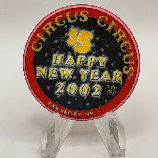 Circus Circus Las Vegas Nevada 2002 'Happy New Year' LE $5 Casino Chip E0256