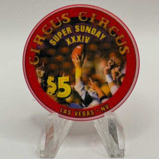Circus Circus Las Vegas Nevada 2000 'Super Sunday XXXIV' LE $5 Casino Chip V3872