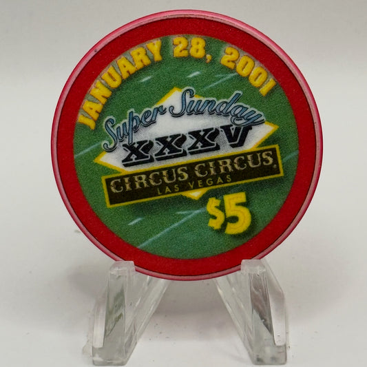 Circus Circus Las Vegas Nevada 2001 'Super Sunday XXXV' LE $5 Casino Chip V7426