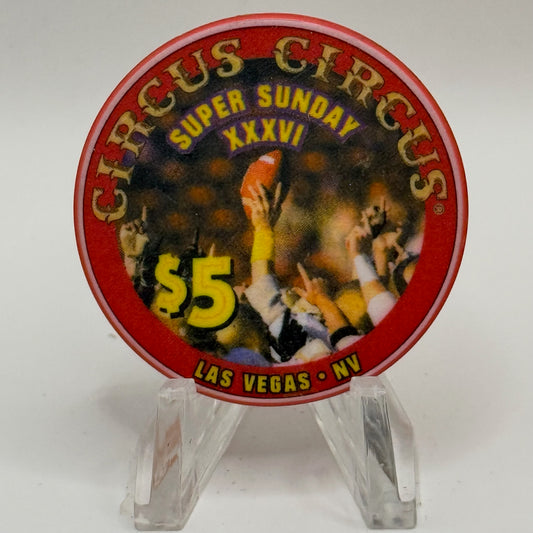 Circus Circus Las Vegas Nevada 2002 'Super Sunday XXXVI' LE $5 Casino Chip V8266
