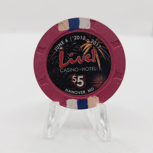 Live! Casino & Hotel Hanover Maryland 2017 "5th Anniversary" $5 Casino Chip