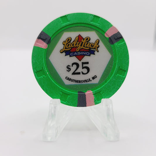 Lady Luck "Riverboat" Casino Caruthersville Mo "UNCIRCULATED" $25 Chip