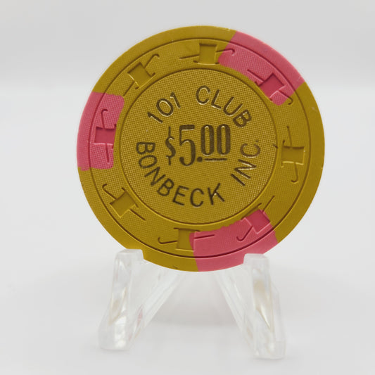 101 Club Bonbeck , Inc. Casino Las Vegas Nevada 1969 $5 Casino Chip N3757