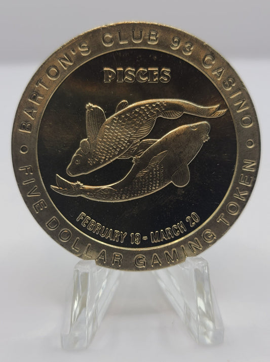 Barton’s Club 93 Casino Jackpot NV “Pisces” $5 Gaming Token
