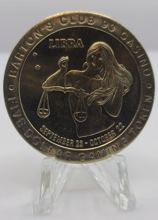 Barton’s Club 93 Casino Jackpot NV “Libra” $5 Gaming Token