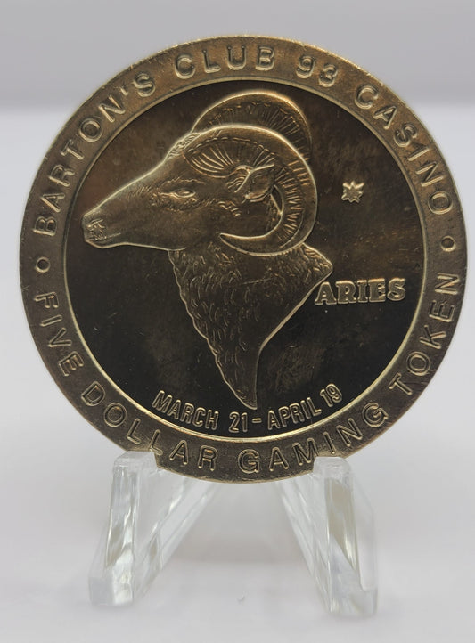Barton’s Club 93 Casino Jackpot NV “Aries” $5 Gaming Token