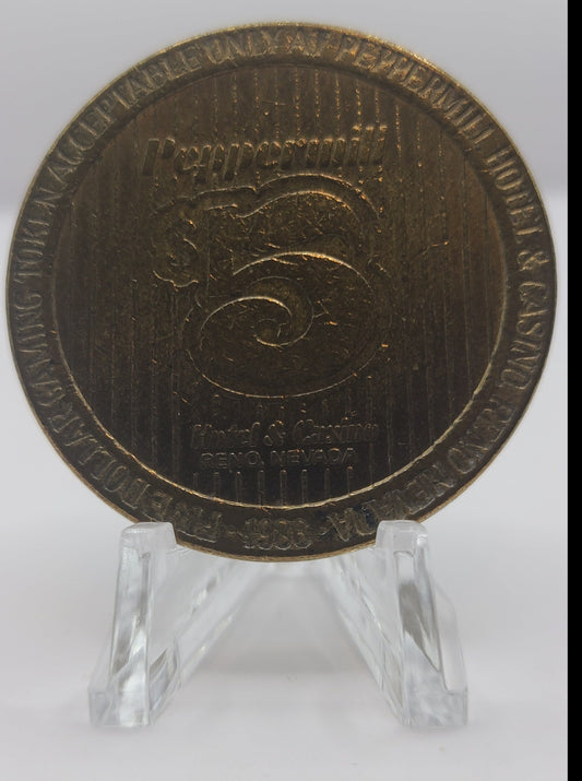 Peppermill Hotel Casino Reno NV 1986 $5 Gaming Token