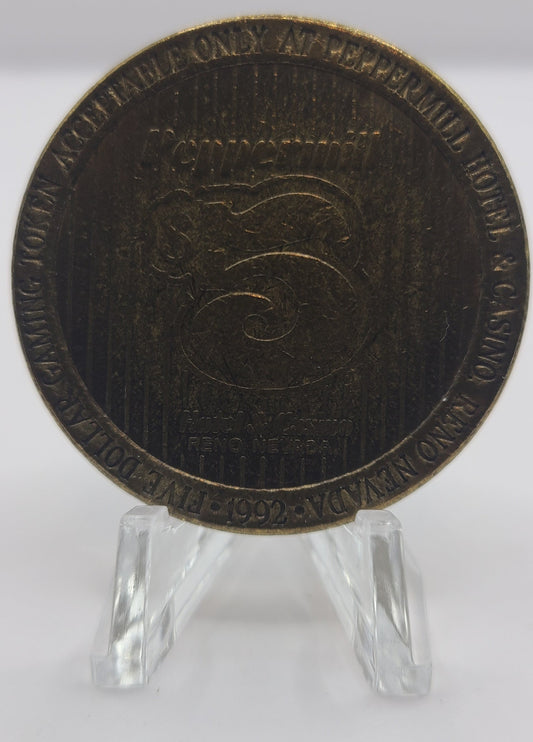 Peppermill Casino Reno NV 1992 $5 Gaming Token