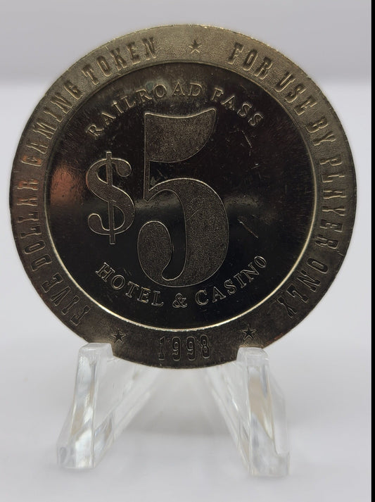 Railroad Pass Hotel Casino Henderson NV 1998 $5 Gaming Token