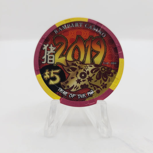 Rampart Hotel Casino Las Vegas Nevada 2019 "Year of The Pig" $5 Casino Chip LTD 888