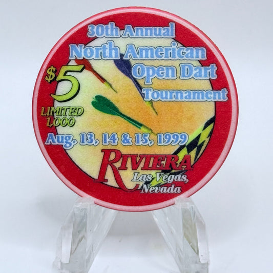 Riviera Las Vegas Nevada 1999 '30th Annual North American Open Dart Tournament' LE $5 Casino Chip V5380