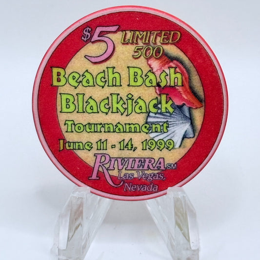 Riviera Las Vegas Nevada 1999 'Beach Bash Blackjack' LE $5 Casino Chip V5383