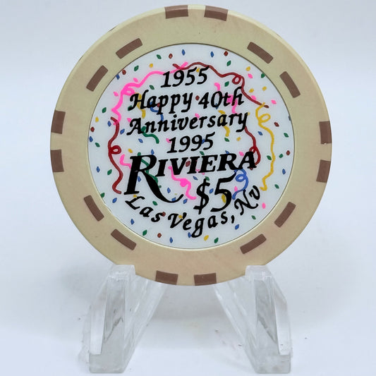 Riviera Las Vegas Nevada 1995 'Happy 40th Anniversary' LE $5 Casino Chip N0502