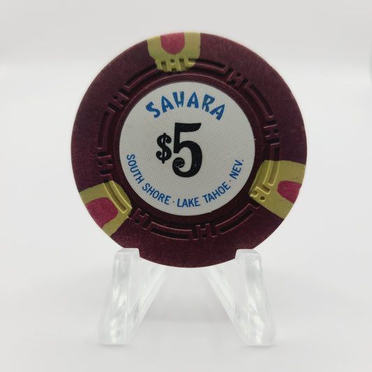 Sahara Hotel Casino Lake Tahoe Nevada 1971 $5 Casino Chip N5506