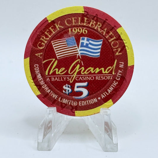 Bally's Grand Atlantic City New Jersey 1996 'Greek Celebration' LE $5 Casino Chip