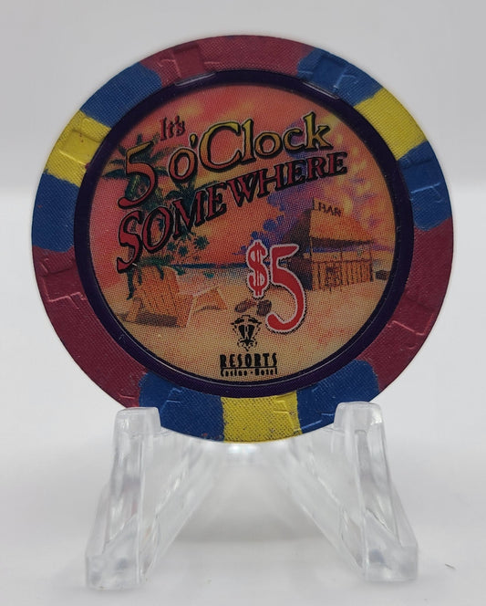 Resorts International Casino Atlantic City NJ "It's 5 o'Clock Somewhere" $5 Chip