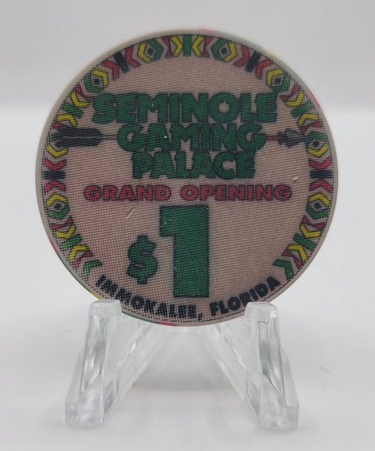 Seminole Gaming Palace Immokalee Florida "Grand Opening" $1 Chip (Worn)