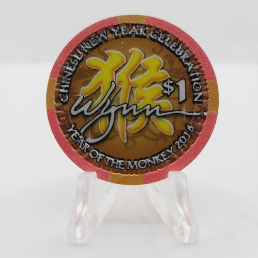 Wynn Resort Casino Las Vegas Nevada 2016 "Year of the Monkey" $1 Casino Chip D2111
